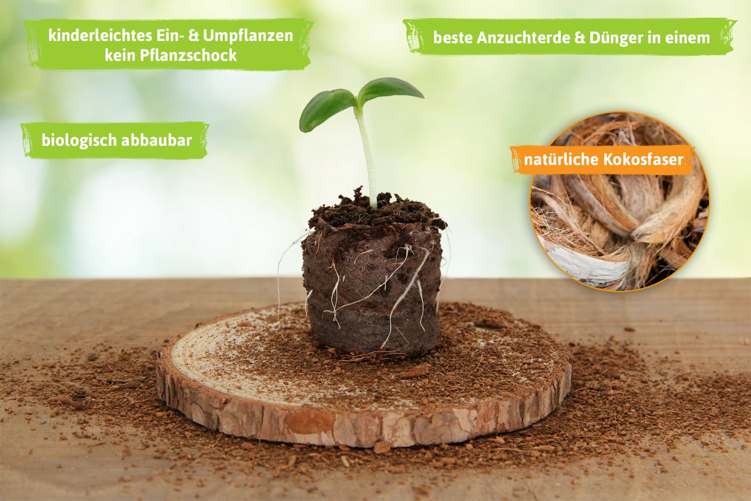Kokos-Quelltabletten sind ideal für die Anzucht von Gemüse, Kräutern und Blumen. Die kleinen Quelltabletten bringen viele Vorteile mit sich: sie sind leicht, praktisch und verfügen über einen ausgewogenen Wasser- und Lufthaushalt. Obendrein sind sie umweltfreundlich und nachhaltig, denn die Pflanzen werden samt der Kokos-Quelltabletten ausgepflanzt.