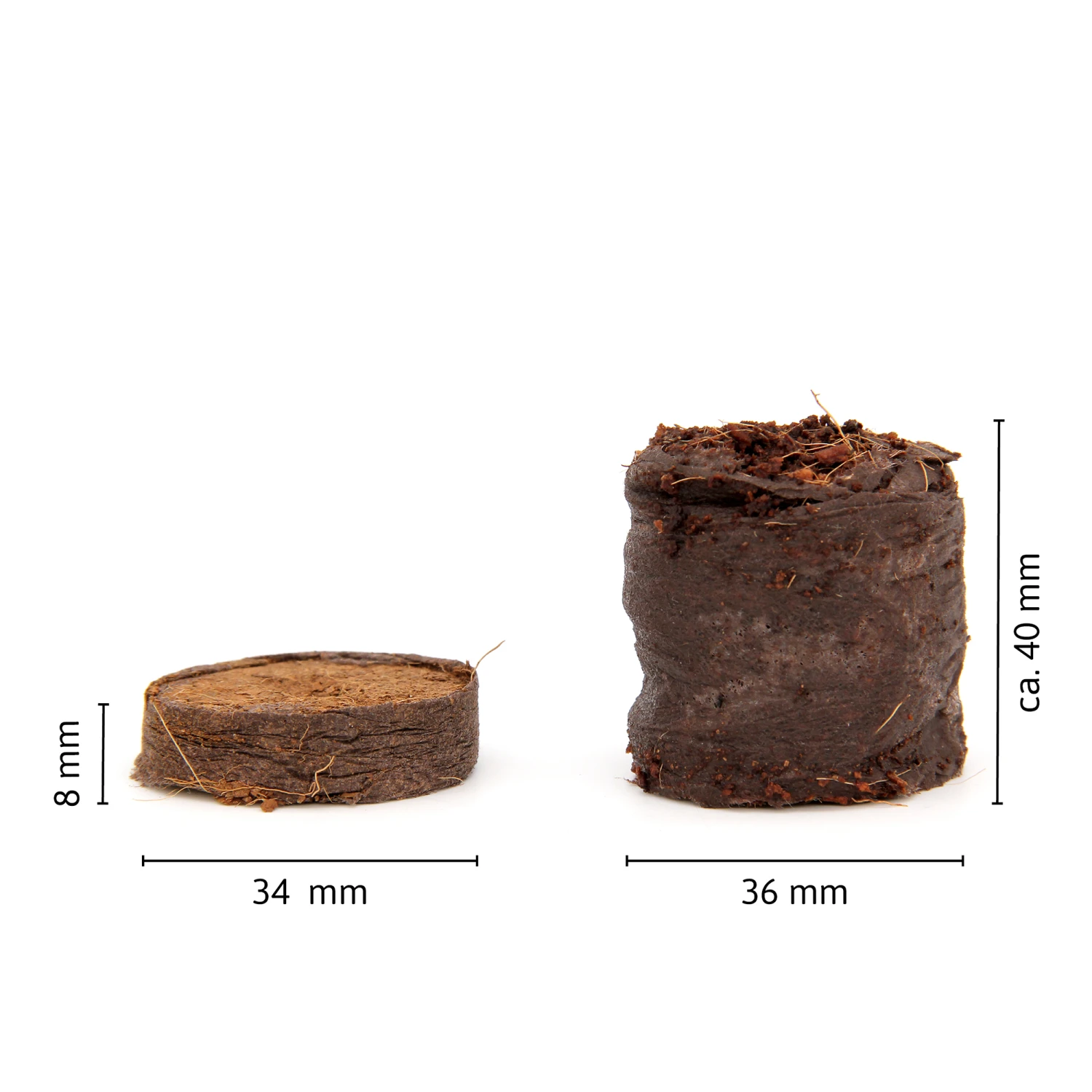 Kokos-Quelltabletten lassen sich einfach in der Anzucht einsetzen. Legen Sie die Quelltabletten auf eine Schale und übergießen Sie die Tabletten mit Wasser. Nach wenigen Minuten haben die Kokosfasern das Wasser aufgezogen und die Kokos-Quelltabletten wachsen auf etwa die 7-fache Größe an. Nun kann das Samenkorn eingelegt werden. Kokos-Quelltabletten eignen sich vor allem für feine Samen.