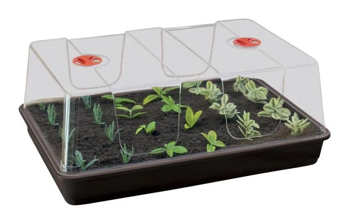 Das GARLAND XL High Dome Zimmergewächshaus ist ein sehr solides Zimmergewächshaus mit einer extra großen Haube. Mit einer Länge von 58 cm und einer Breite von 40,5 cm bietet dieses Garland XL-Gewächshaus genügend Platz für Ihre Setzlinge oder Stecklinge. Das XL-Gewächshaus besteht aus einem PP-Boden und einem PS-Deckel. Der Deckel hat zwei Lüftungsöffnungen, die geöffnet und geschlossen werden können. Dies ist sehr wichtig, da Sämlinge und Stecklinge eine konstante Luftfeuchtigkeit von ca. 60-80% und eine Temperatur von 20-25°C benötigen. Das XL-Gewächshaus ist für alle Größen von Stecklingsschalen geeignet. Länge: 58 cm Breite: 40 cm Höhe: 22,5 cm Hergestellt aus Polypropylen (PP), Polystyrol (PS)