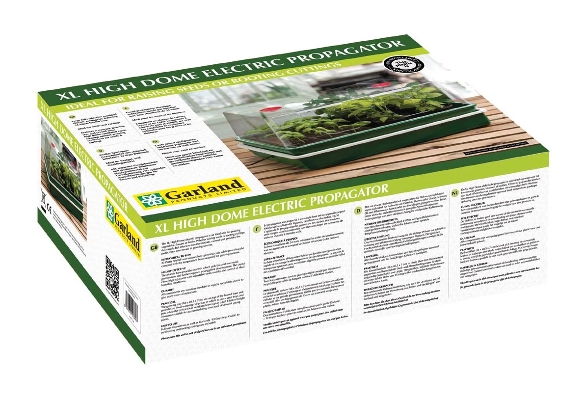 Das beheizter Gewächshaus High Dome von Garland, ist für alle Standard Anzuchttöpfe geeignet. Dank des beheizten Bodens, wird die Keimung und das Wachstum gefördert. Der Deckel ist mit zwei Lüftungsöffnungen ausgestattet, die geöffnet und geschlossen werden können. Das ist sehr wichtig, denn Setzlinge und Stecklinge brauchen eine konstante Luftfeuchtigkeit von etwa 60-80 % und eine Temperatur von 20-25 °C. Der beheizte Garland High Dome ist 58 cm lang, 41 cm breit und 26,5 cm hoch. Dank des extra hohen Deckels bietet das Gewächshaus mehr als genug Platz für die Keimung von Setzlingen, die Bewurzelung von Stecklingen oder die Vorzucht Ihrer Pflanze.