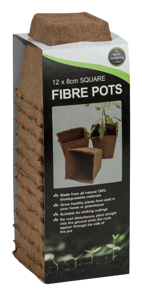 Dieser Artikel enthält 12 oder 48 viereckige Fibre Pots mit einem Durchmesser von 8 cm.