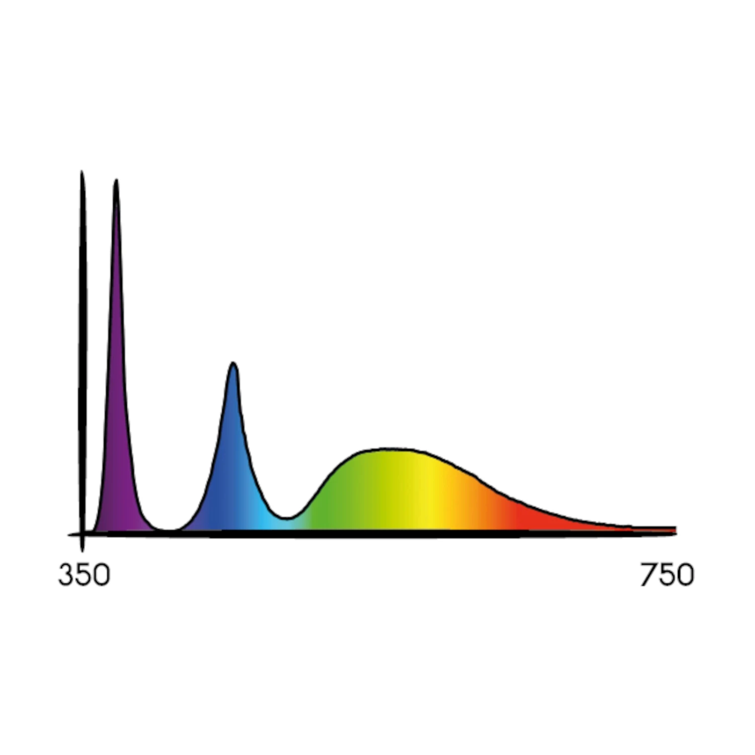 Farbtemperatur pro Reihe: 6500 K/265 nm/6500 K