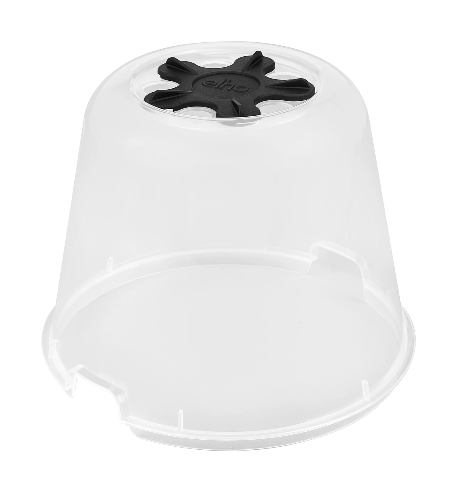 Lassen Sie Pflanzen, Stecklinge und selbst gezogene Gemüsepflanzen mit dem green basics Anzuchthaus noch schneller wachsen. Die Abdeckhaube setzen Sie einfach auf einen der green basics Anzuchttöpfe. Ideal für hochwachsende Kräuter wie Schnittlauch und Basilikum oder auch Tomatenpflanzen. Vom Samen bis zur Ernte, mit dem Anzuchthaus round wachsen alle Pflanzen unter idealen Bedingungen. Mit der oben in der Haube befindlichen Lüftungsöffnung können Sie die Sauerstoffzufuhr und Temperatur regeln. Damit sorgen Sie für perfekte Wachstumsbedingungen für Saatgut, Stecklinge und Pflanzen. Mit der Abdeckhaube schützen Sie außerdem Saatgut, Stecklinge und Ernte vor Ungezieferbefall. Die kleine Version dieser Kollektion mit einem Durchmesser von 17 cm wurde speziell für Kräuter entwickelt. Die große mit 30 cm Durchmesser wiederum eignet sich hervorragend für Gemüse und andere Pflanzen. Alle Produkte der green basics Kollektion von elho bestehen aus recyceltem Kunststoff. Die Abdeckhaube können Sie problemlos in die Sonne stellen, denn der eingebaute UV-Filter verhindert ein Überhitzen der Stecklinge und Pflanzen. Außerdem ist die Haube pflegeleicht und einfach zu reinigen. Das Anzuchthaus ist witterungsbeständig und für Temperaturen bis zu -40° C geeignet. Kein Problem, wenn Sie die Haube versehentlich umstoßen oder fallenlassen, denn die green basics Produkte von elho sind bruchsicher.