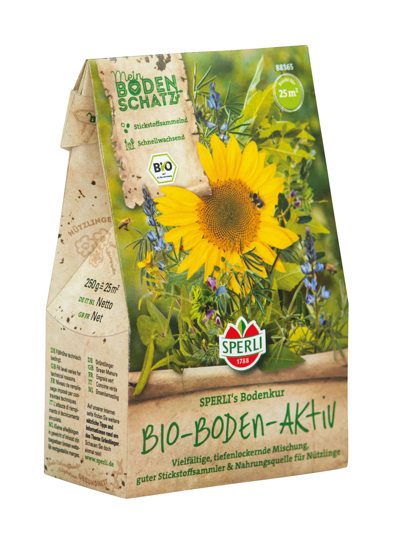 SPERLIs BIO – Boden – Aktiv ist besonders als Vorfrucht für den Anbau von Kohl geeignet. Die einjährige Mischung ist schnellwachsend und damit Unkrautunterdückend. Die Stickstoffbindung und starke Durchwurzelung des Bodens, wird eine ideale Basis für nachfolgende Kulturen geschaffen. Als Vorfrucht für Leguminosen ist die Mischung eher nicht geeignet. Bei überdüngten Böden kann die Mischung als Stickstoffregulierer eingesetzt werden. Sie ist eine gute Nahrungsquelle für Nützlinge & kann als Gründünger oder auch als Blühmischung verwendet werden.
