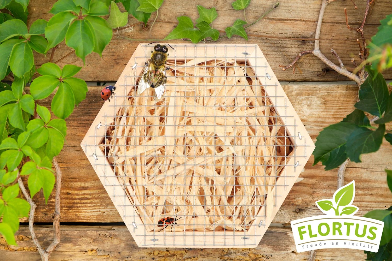 Das Insektenhäuschen müssen Sie innen nicht reinigen. Die Insekten übernehmen das Putzen selbst. Lediglich außen können Sie ab und zu das Hexagon abkehren oder mit warmem Wasser reinigen.