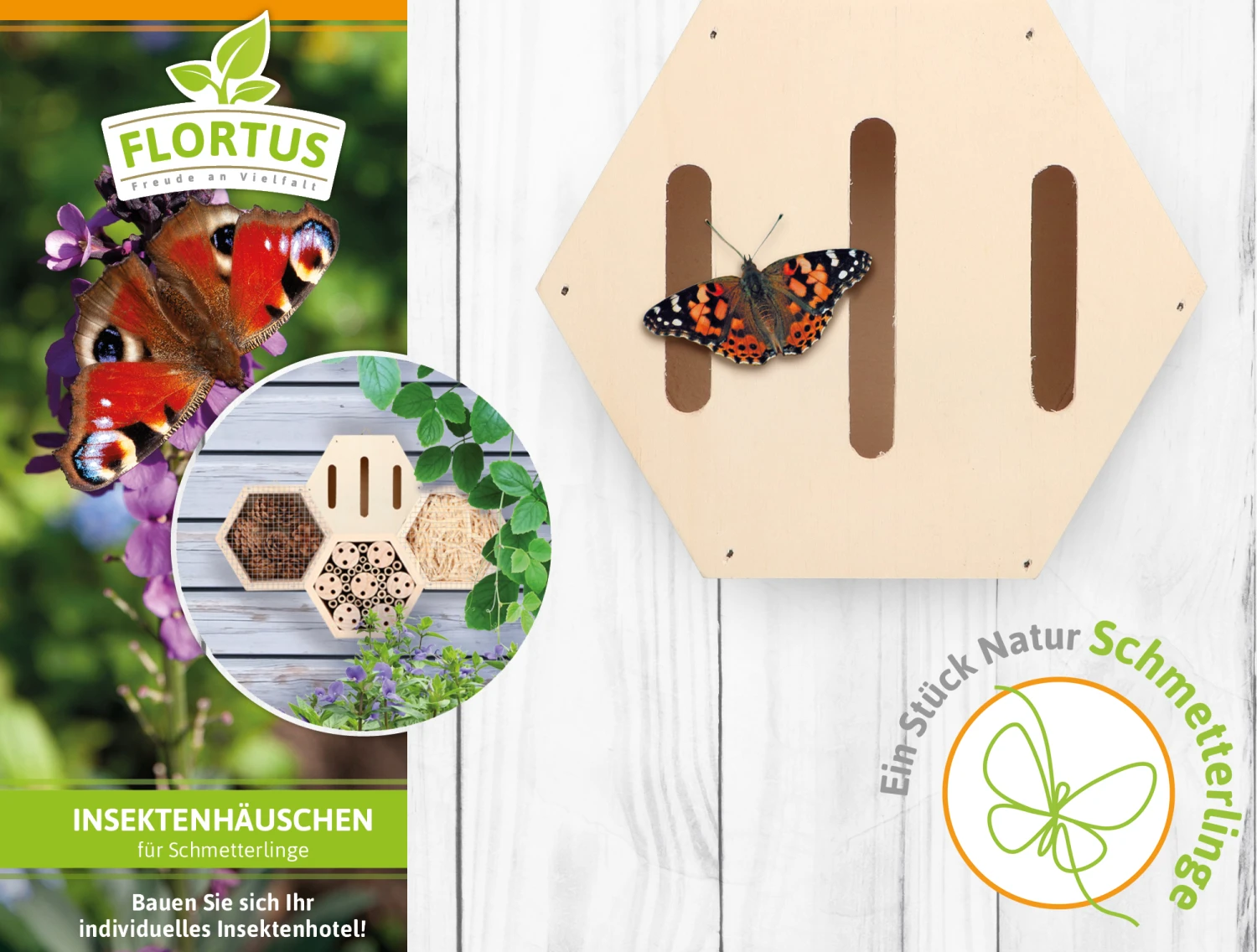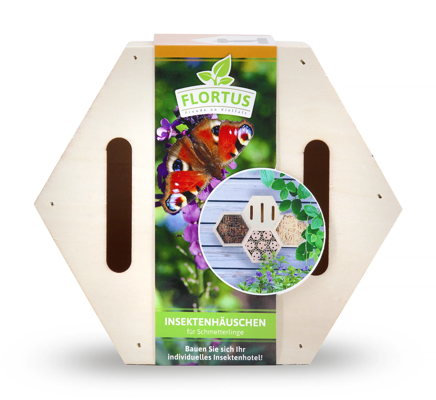 Ein Garten voller Schmetterlinge ist etwas wundervolles. Schmetterlinge sind der Inbegriff von Leichtigkeit, Schönheit und Fröhlichkeit. Sie tummeln sich auf zahlreichen Blüten und tanzen durch die Lüfte. Damit die Schmetterlinge auch in Ihren Garten kommen, sollten Sie Ihren Garten nicht nur naturnah gestalten, sondern den Schönheiten auch einen Unterschlupf bieten. Das Insektenhäuschen für Schmetterlinge gibt es in Form eines Hexagons. Sie brauchen das Insektenhäuschen nur noch mit verschiedenen Materialien füllen. Stroh, Tannenzapfen, Holz, hohle Pflanzenstängel, dünne Äste und vieles mehr sind ideales Füllmaterial. Schmetterlinge lieben vor allem dünne Äste.