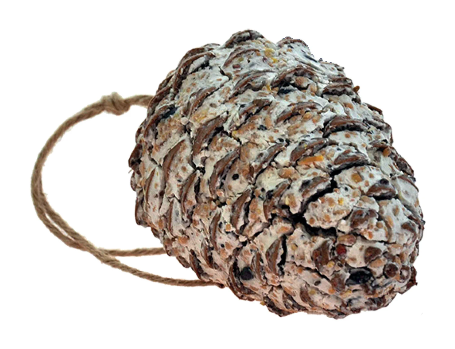 Ein 100%iges Naturprodukt! Ein großer Kegel, gefüllt mit Talg, ölhaltigen Samen und Körnern. Liefert Nahrung für kleine Vögel und sieht dekorativ im Garten aus.