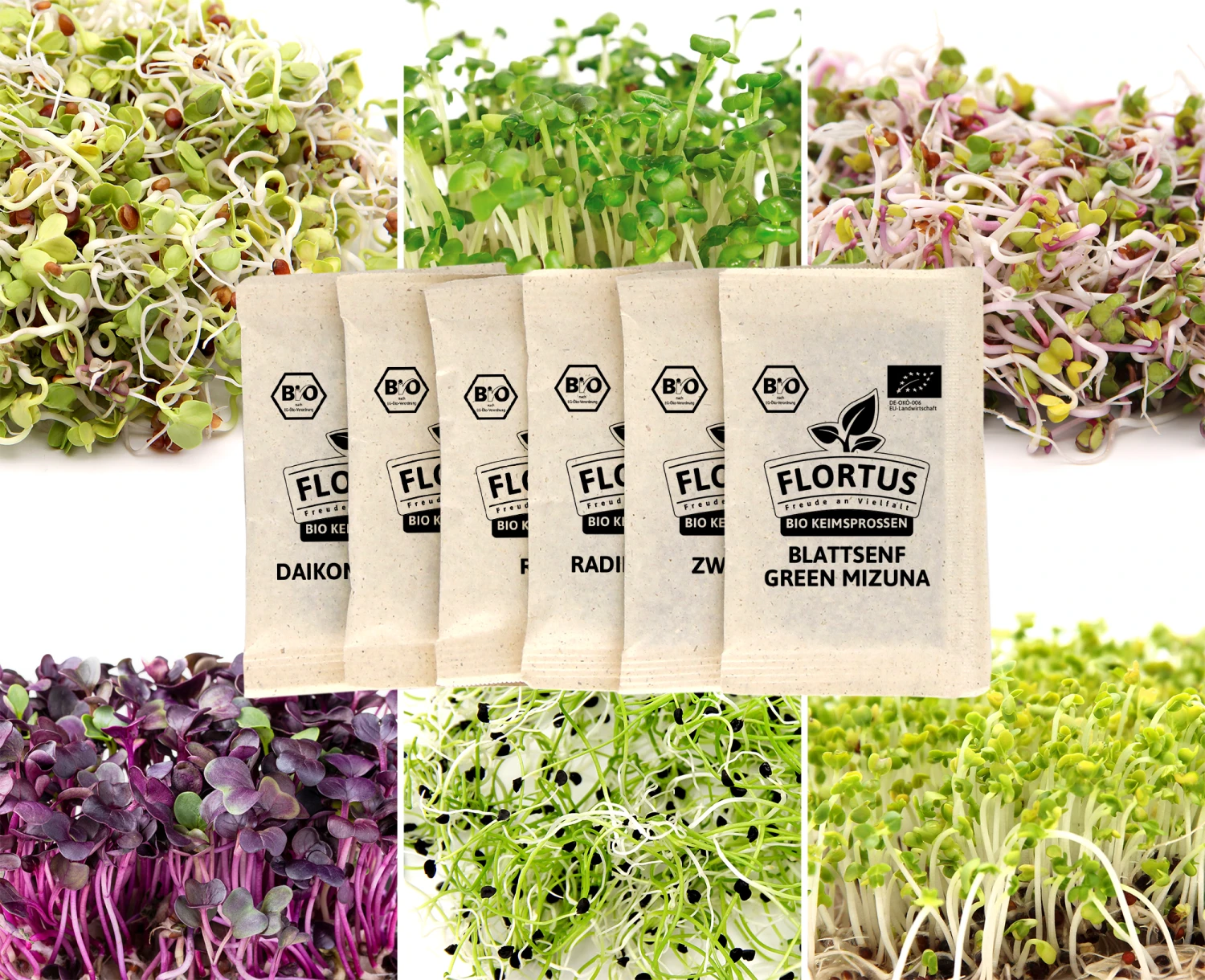 Lieben Sie es scharf? Dann ist das Bio-Sprossenset Scharf genau das richtige für Sie. Auch wenn die Sprossen an die Schärfe von Chili nicht heranreichen, bringen sie doch einen angenehm scharfen Geschmack mit Daikon-Rettich, Zwiebel, Blattsenf Green Mizuna, Senf, Radies und Radies Sango können einem Gericht die gewünschte Schärfe geben. Dabei sind die Sprossen knackig und gesund, denn sie bringen wichtige Vitamine und Mineralstoffe in geballter Form mit. Jede Keimsprossen-Art ist separat verpackt. So können Sie die Keimsprossen ansäen, die Sie brauchen.