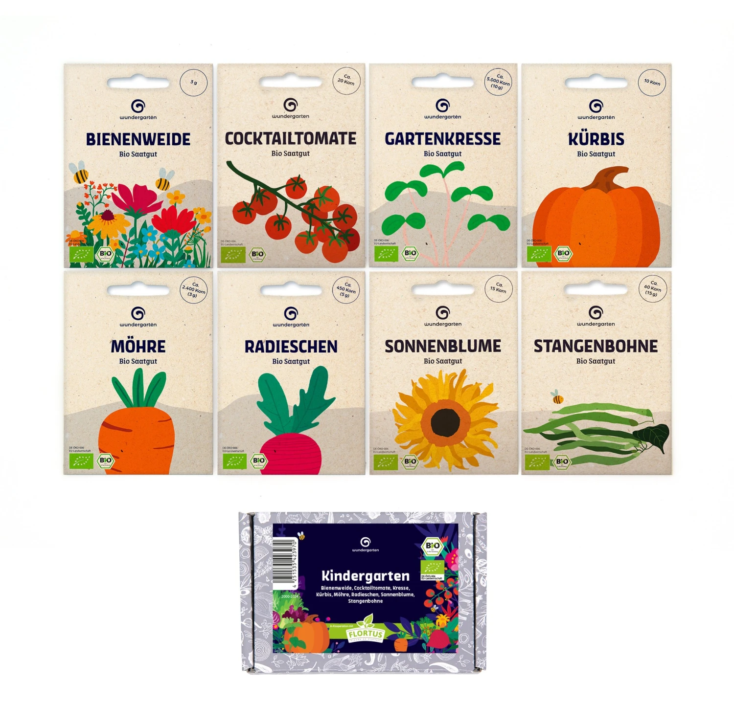 Es gibt Gemüse, das sich besonders leicht anziehen lässt und für ein Beet im Kindergarten wunderbar geeignet ist. Mit Anleitung können schon die Kleinsten Kresse, Möhre, Radieschen, Sonnenblumen und Stangenbohnen anziehen und pflegen. Aber auch Cocktailtomate, Kürbis und Bienenweide gedeihen prächtig, wenn Erwachsene die Kinder unterstützen. Für die Kleinen ist es nicht nur ein Erlebnis, den Pflanzen beim Wachsen zuzusehen. Noch schöner ist es, die köstlichen Früchte zu genießen. Mit dem Kindergarten Set haben Sie die passende Auswahl für einen tollen Garten.