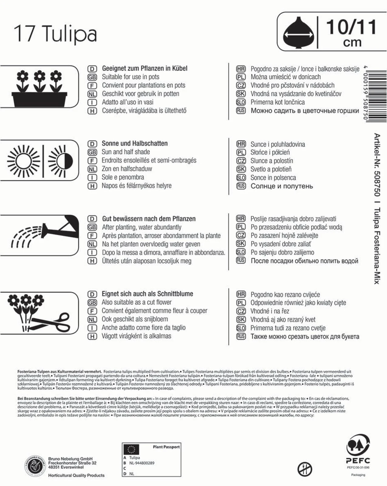 Bei dem Mega-Pack „Fosteriana-Tulpe Mischung“ handelt es sich um eine von Fachleuten zusammengestellte bunte Mischung an Kaisertulpen. Mit ihren vielen verschiedenen Farben sehen diese Blumen tatsächlich majestätisch aus. Sie gedeihen sowohl im Beet als auch in Kübeln prächtig und eignen sich damit sowohl für eine Pflanzung im Garten als auch auf dem Balkon. Sie erreichen eine Höhe von 35 cm und blühen von April bis Mai wunderschön.