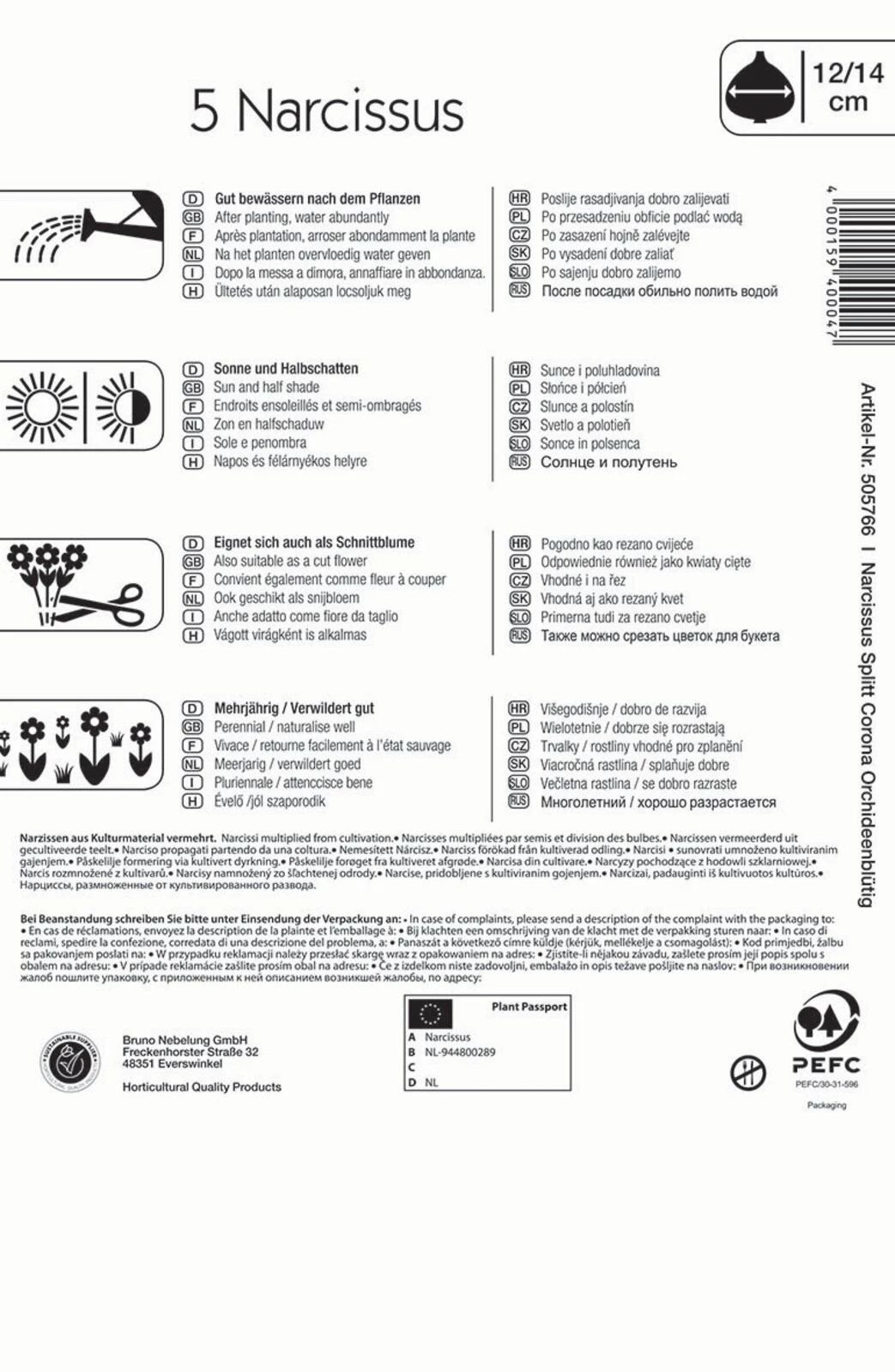 Ein buntes Arrangement wunderschöner mehrfarbiger Blumen bietet die Narzissenmischung „Orchideenblütiger Mix“. Die Narzissen kokettieren in den Farben Weiß und Gelb bis hin zu Orange. Da Narzissen sehr anspruchslos sind und mehrere Jahre willig wiederkommen, werden sie gruppenweise gepflanzt. Diese Sorte blüht im April und neigt besonders zum Verwildern. Zudem ist sie sehr gut als Schnittblume geeignet, die ihren frühlingshaften Charme ins Haus bringt. Zwiebeln, die in Kübel oder andere Gefäße gesetzt wurden, können geschützt an der Hauswand, in der kalten Garage oder unter Gartensträuchern überwintern. Im Frühjahr kann das Pflanzgefäß ab Mitte bis Ende März vollends ins Freie gestellt werden.