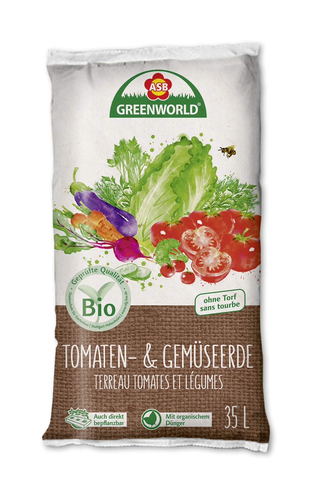 Gebrauchsfertig gedünge Pflanzerde für alle Gemüsearten, auch geeignet zum Pflanzen direkt in den Sack. 100 % organische, regionale Rohstoffe