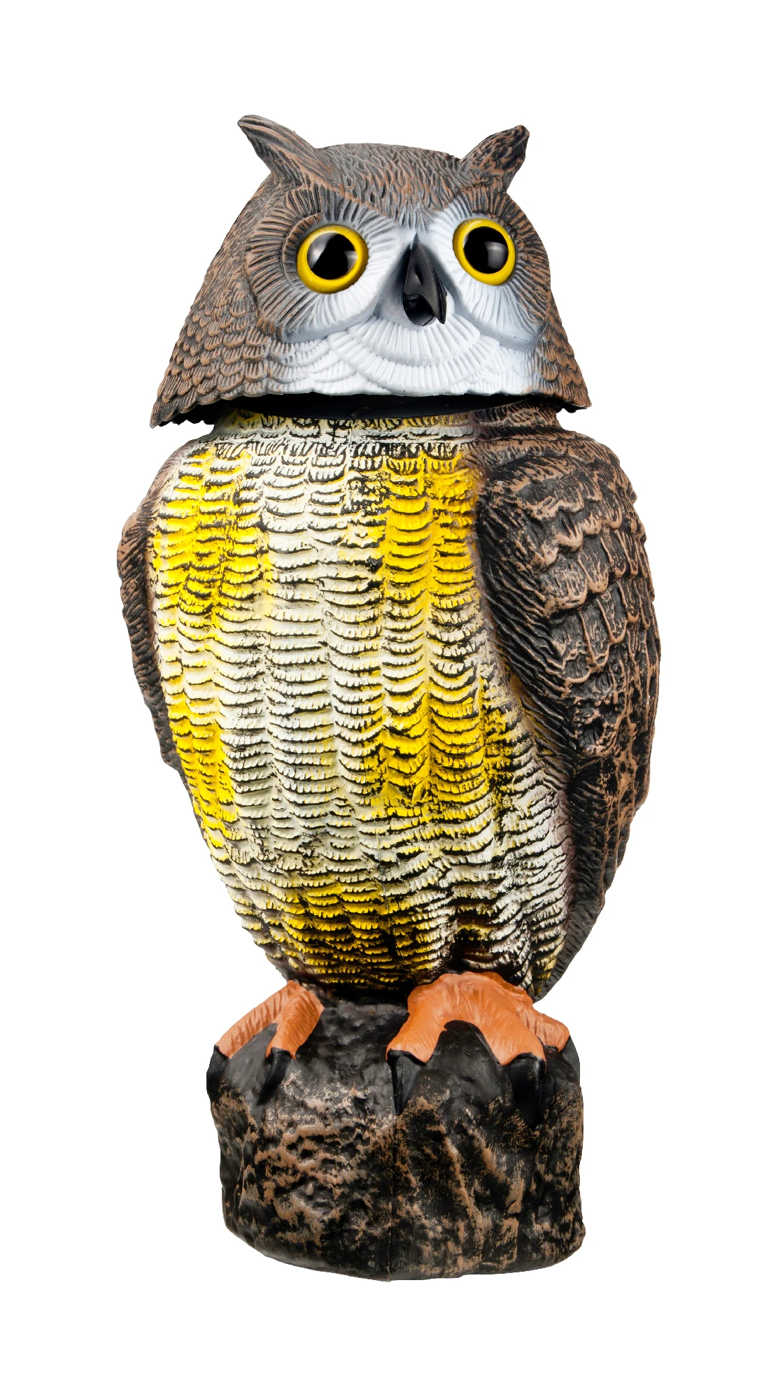 Diese dekorative Eulen-Nachbildung vertreibt zuverlässig störende Vögel aus dem Gemüsegarten, von Balkon bzw. Terrasse und von überall dort, wo Vogelfraß z.B. durch Stare, Spatzen, etc. und Verschmutzungen durch Vögel unerwünscht sind. Dank der naturnahen Form und Größe sowie der reflektierenden Augen wirkt die Wind-Wackel-Eule sehr lebendig und schreckt so Eindringliche und Störenfriede ab. Sie bewegt zudem den Kopf im Wind, was die Wirkung zusätzlich unterstreicht.