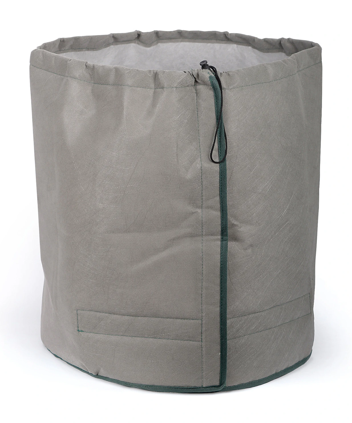 Isolierender Winterschutz für Pflanzen in Töpfen auf z.B. Balkonen. Mit Klettverschluss und Kordelzug. Mit drei Schutzschichten aus Polyproplyen (PP), 100g/m² bzw. 30g/m² und Polyethylen (PE). Boden aus 4cm dickem Styropor. Höhe 50cm, Ø 45 cm.